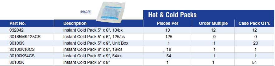 Instant Cold Packs, Instant Ice Packs, Disposable / Single Use