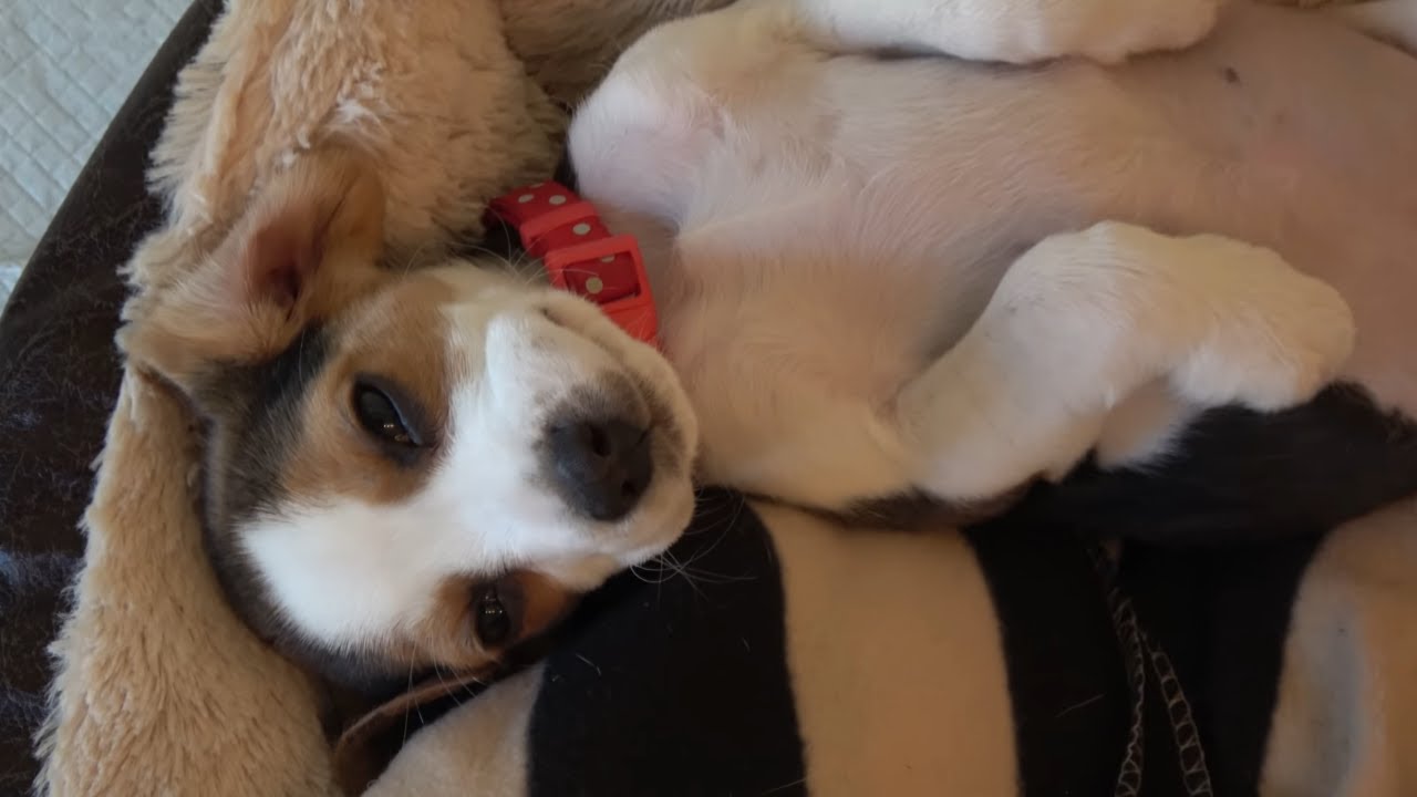 Sleepy beagle puppy refuses morning walk in funniest way