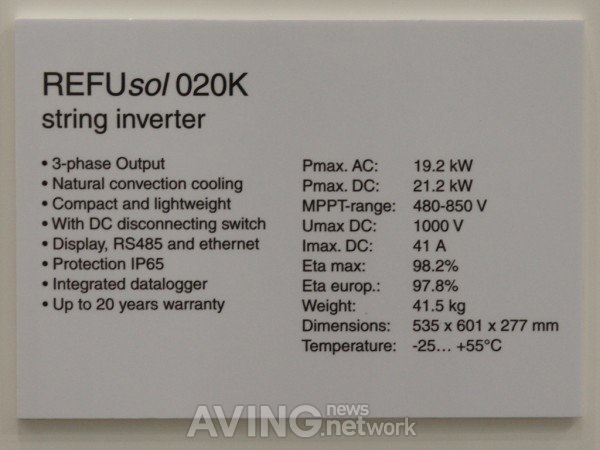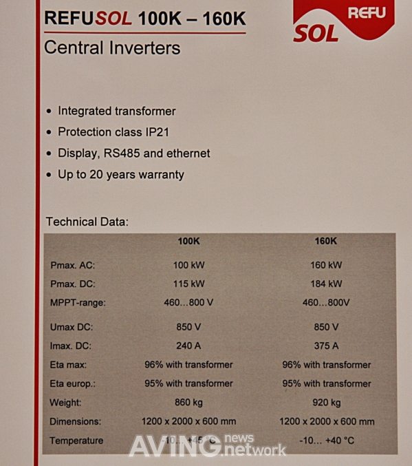 [미리보는 제8회 국제그린에너지엑스포] 독일 ReFuSOL, 센트럴 인버터 'REFUSOL 100K-160K' 소개