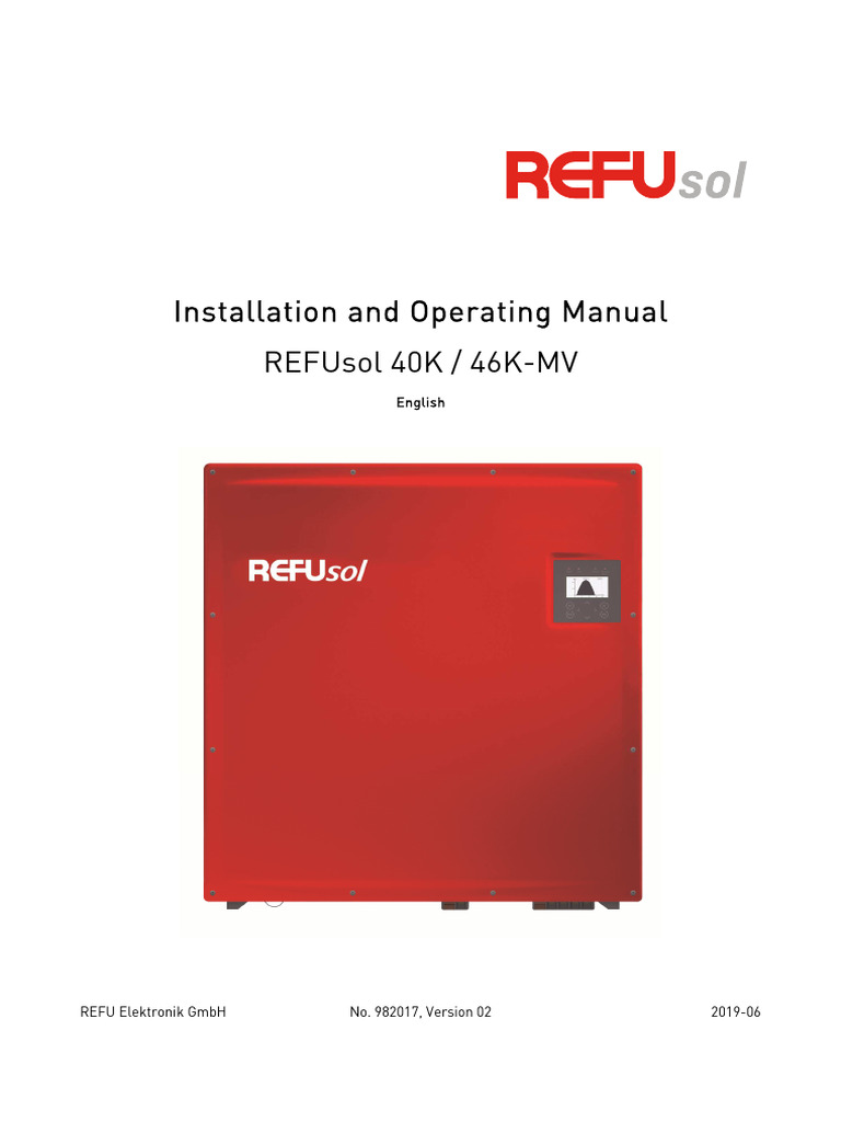 REFUsol Complete Installation Manual 842 40K 46K 2019 06 - en | PDF ...