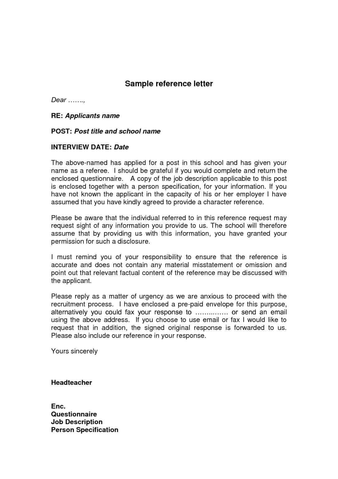 Employment Reference Letter Sample Template | Template Samples