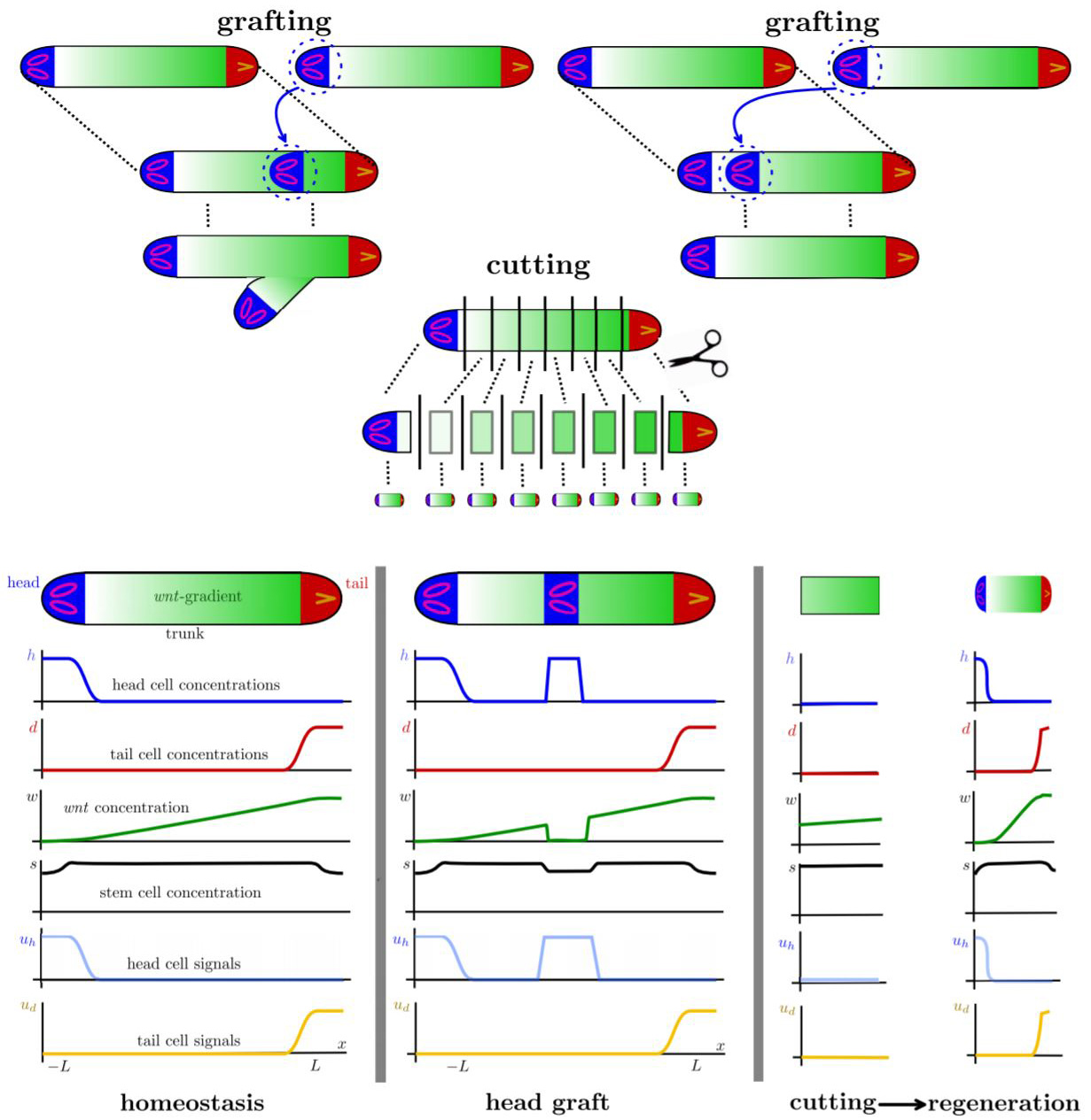 This figure depicts a classic planaria regeneration experiment ...