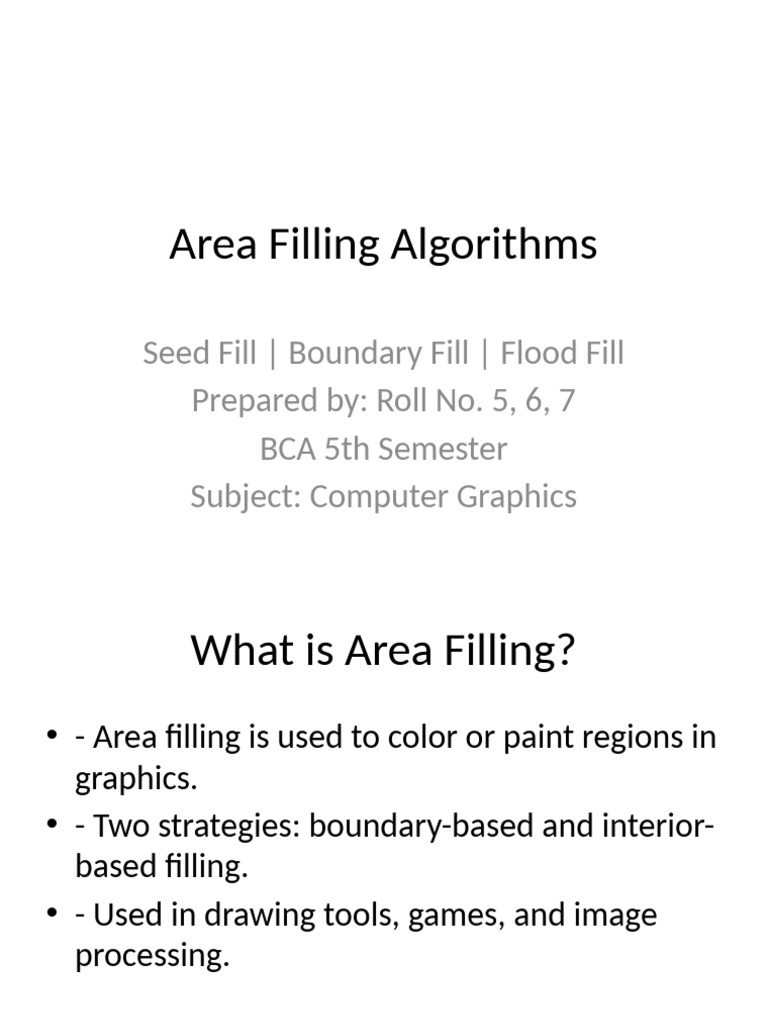 Introduction to Area Filling Algorithms - Area Filling, Transformations ...