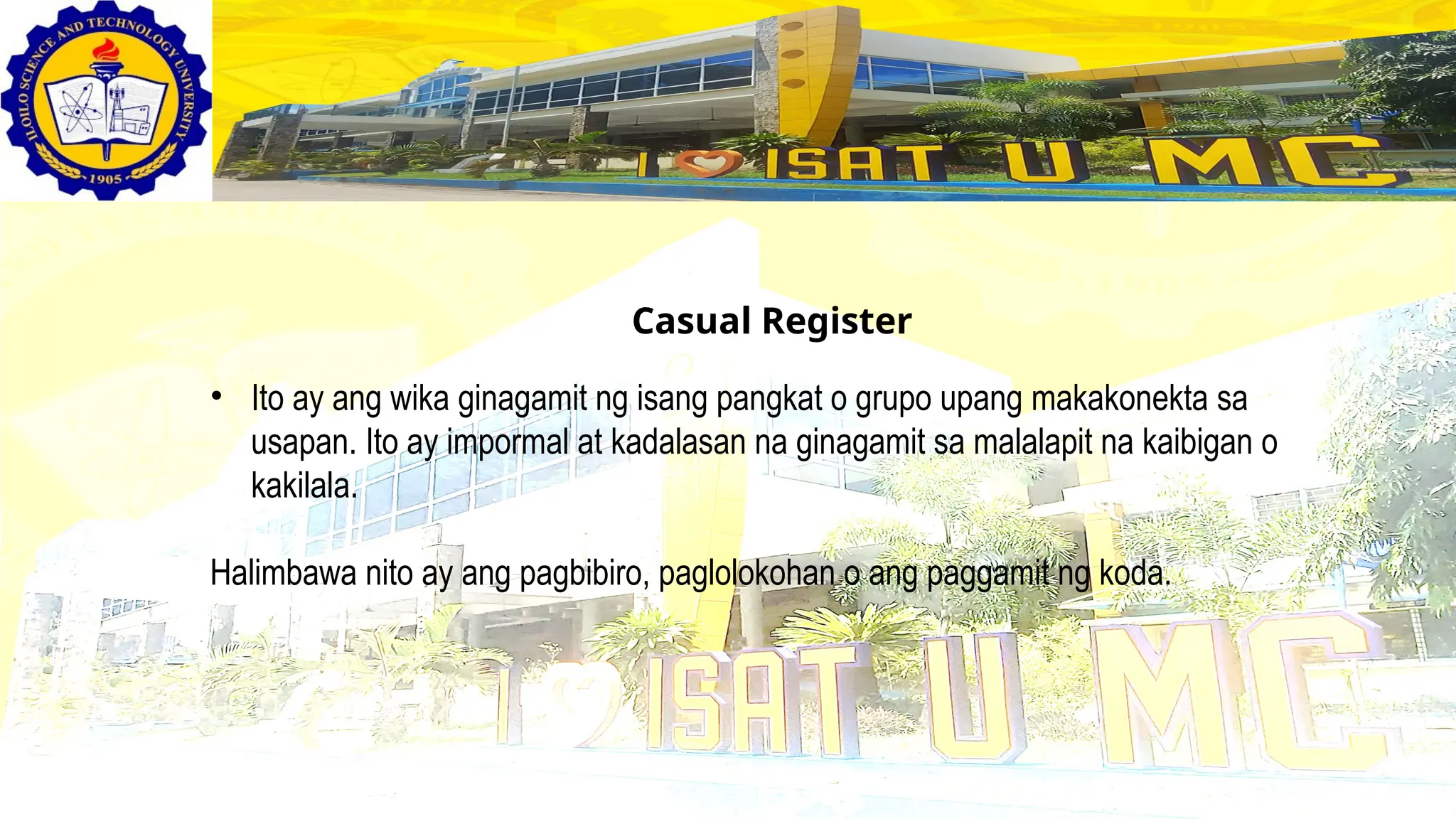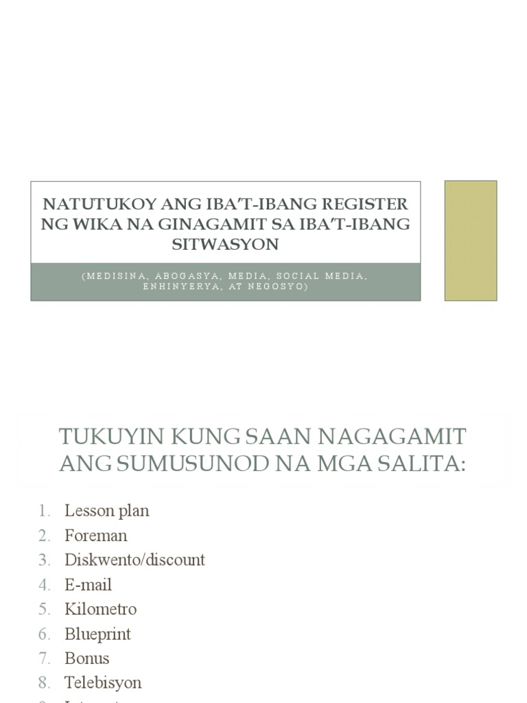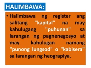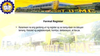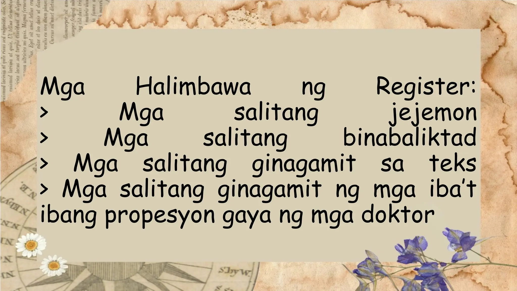 magtala ng tig limang halimbawa ng register para sa mga binigay na mga ...