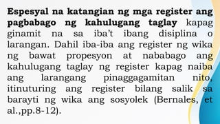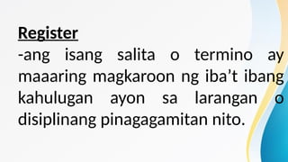 REGISTER NG WIKA , KAHULUGAN AT ANG MGA KATANGIAN NITO | PDF