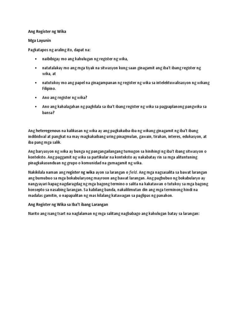Register Na Wika (Kahulugan at Mga Halimbawa) | PDF