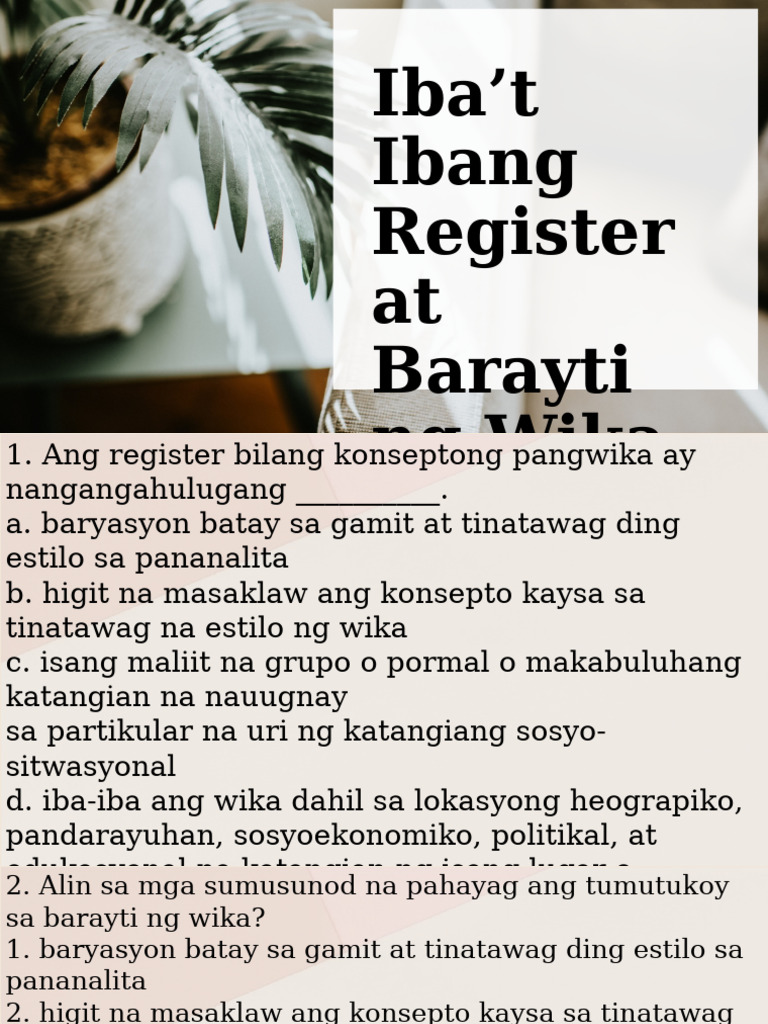 [Solved] Magbigay ng mga halimbawa ng Register ng Wika na may kaugnayan ...