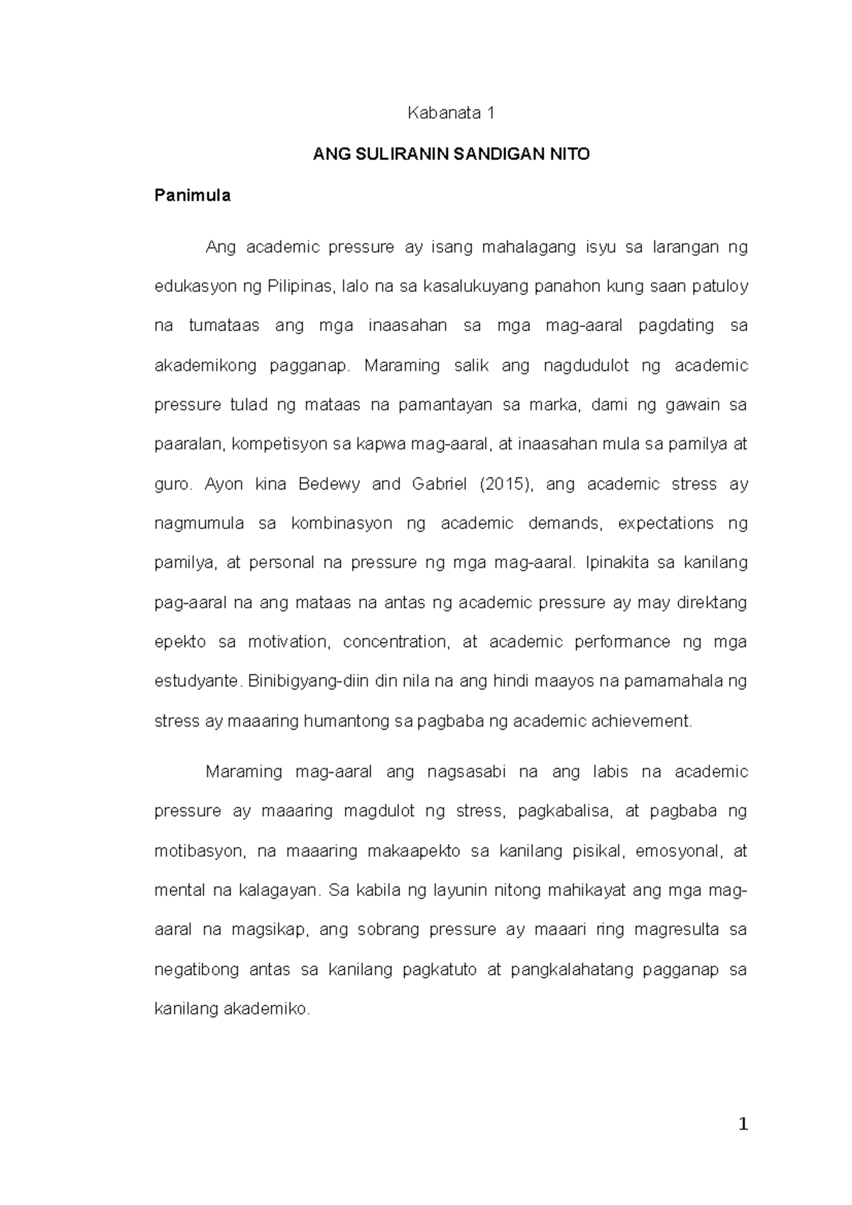 Kabanata 1: Antas ng Academic Pressure at Epekto Nito sa mga ...
