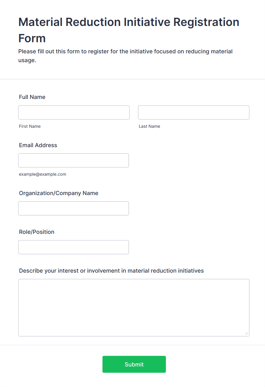 Material Reduction Initiative Registration Form Template | Jotform