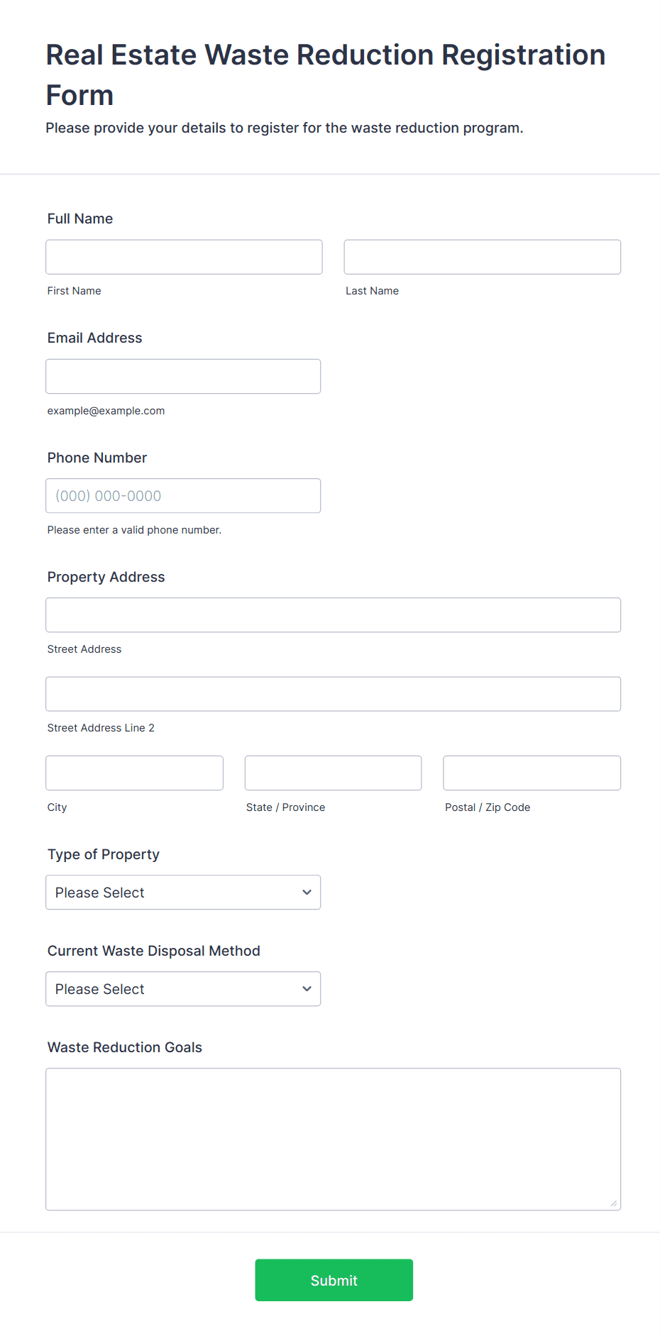 Real Estate Waste Reduction Registration Form Template | Jotform