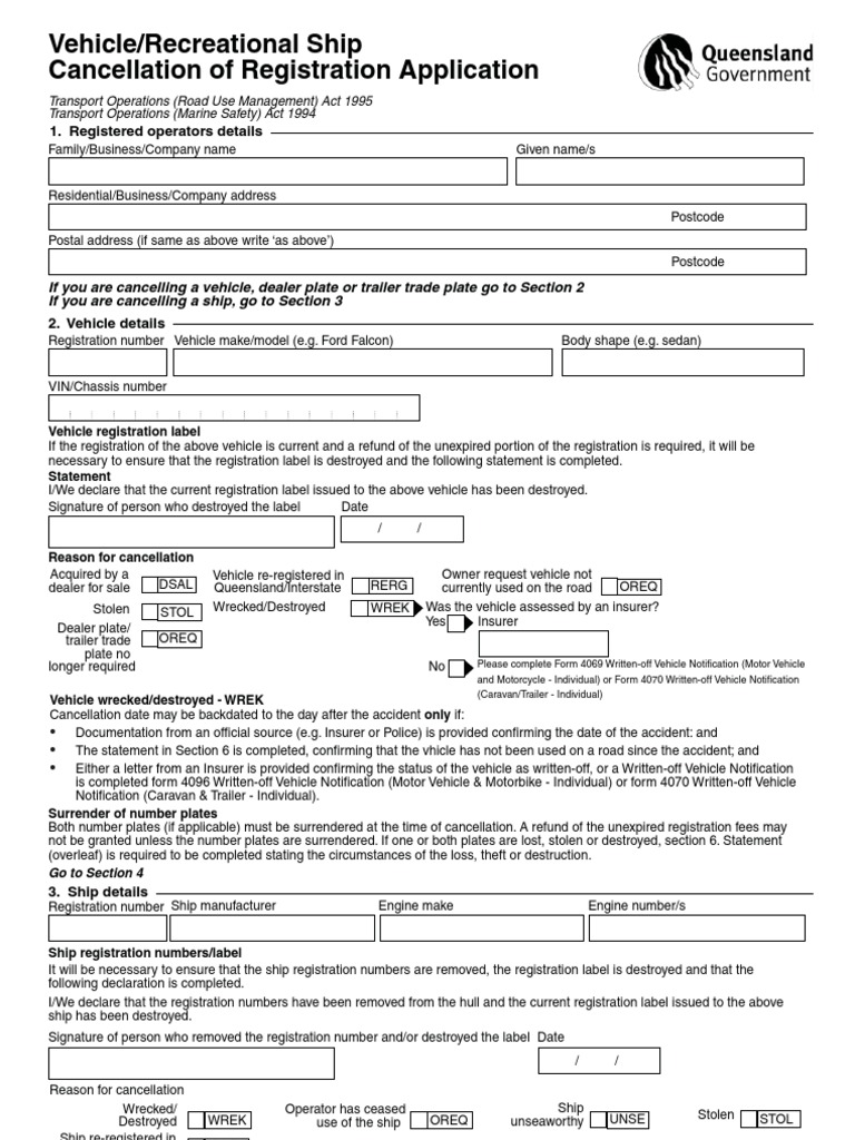 Vehicle/Ship Registration Cancellation Form | PDF | Vehicle ...