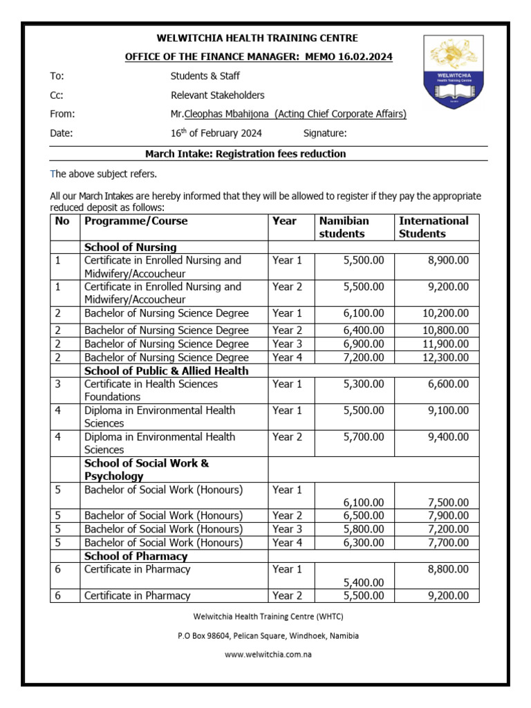 Memo 16.02.2024 March Intake Registration Fees Reduction 2 | PDF ...
