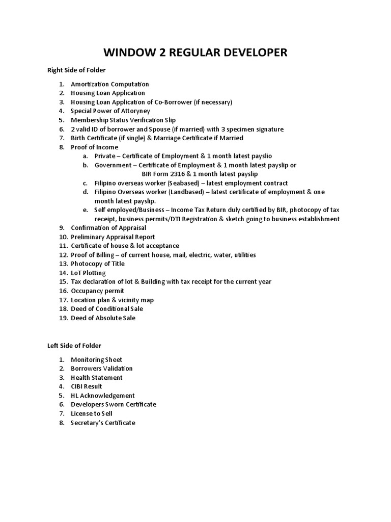 Checklist of Requirements For Pag-Ibig Housing Loan Application Under ...