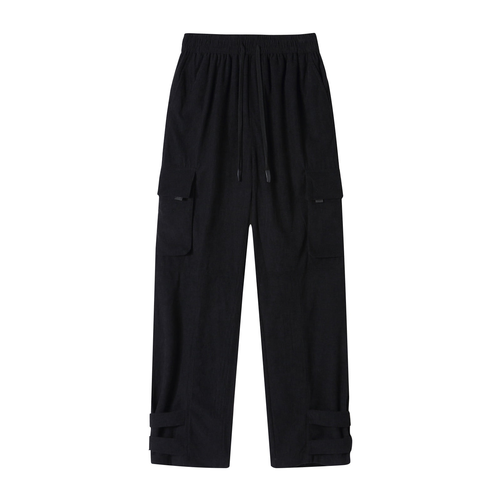 Zynviq Elastic Waist Mens Pants Regular Drawstring Corduroy Straight ...