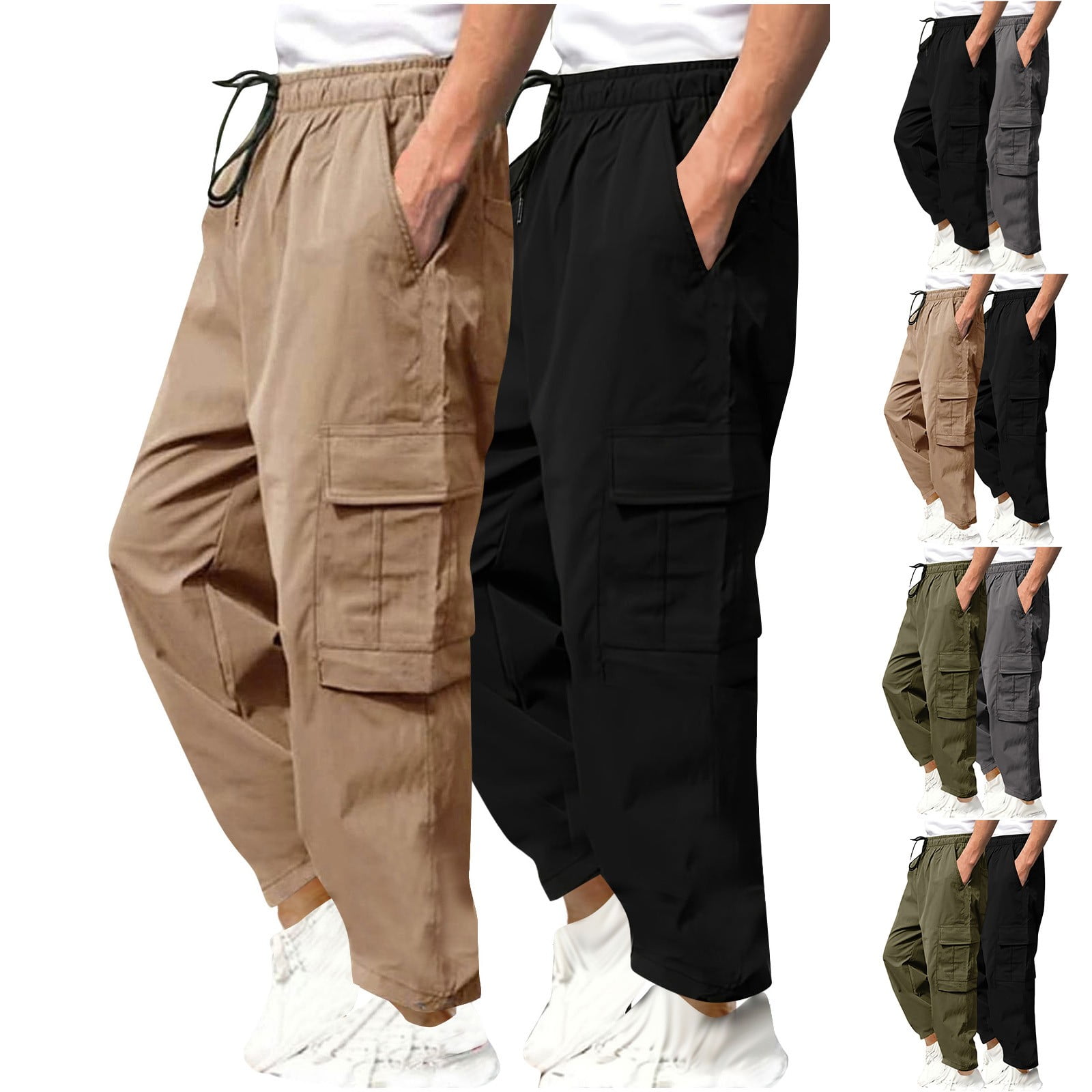 pstuiky Men'S Cargo Pants, Solid Color Straight Type Casual Drawstring ...