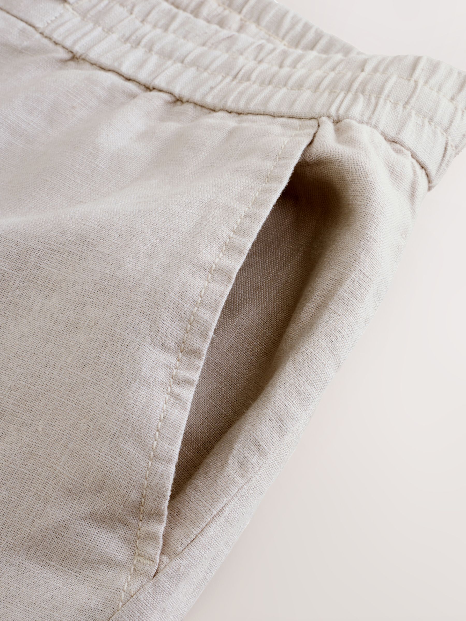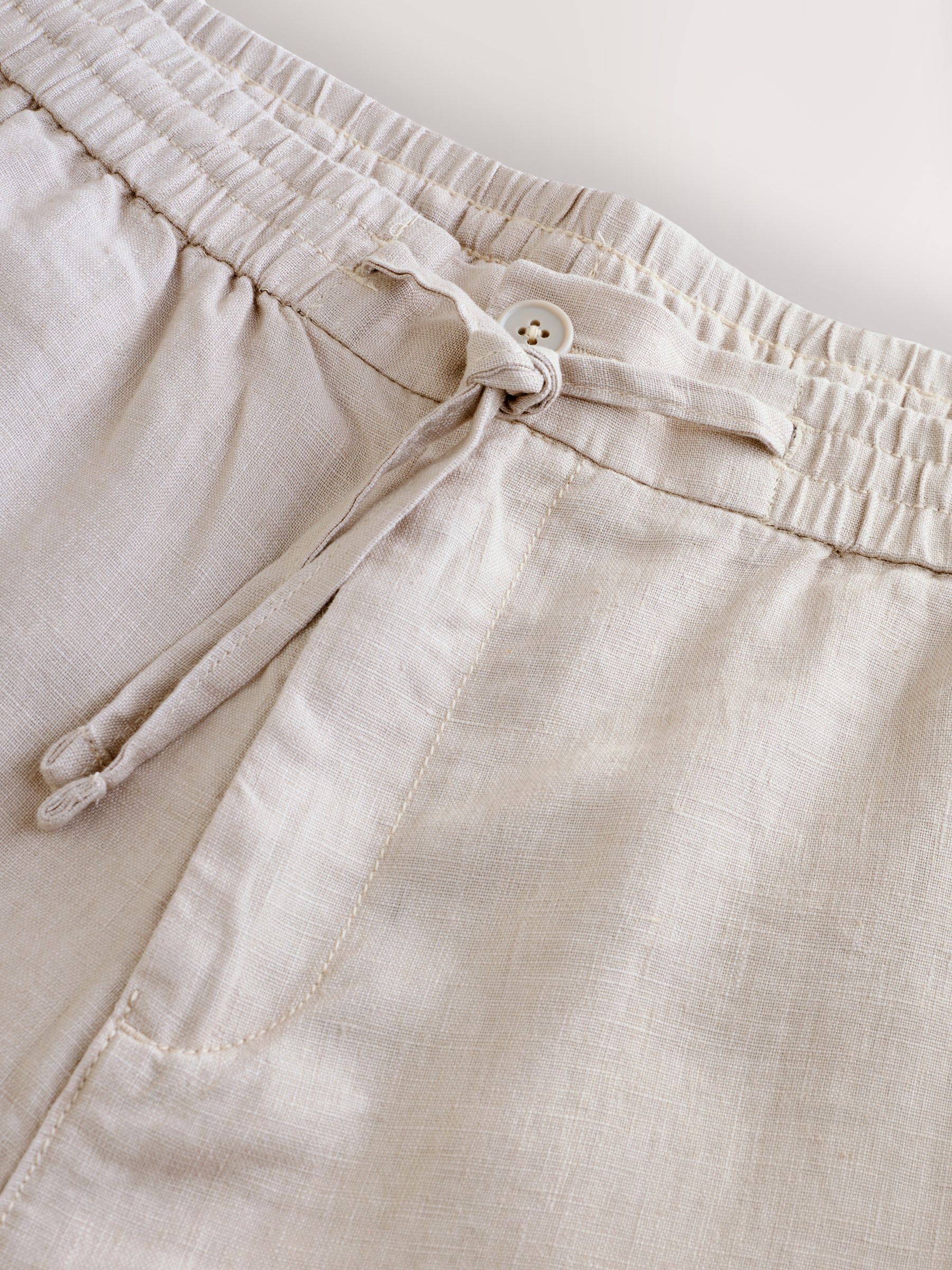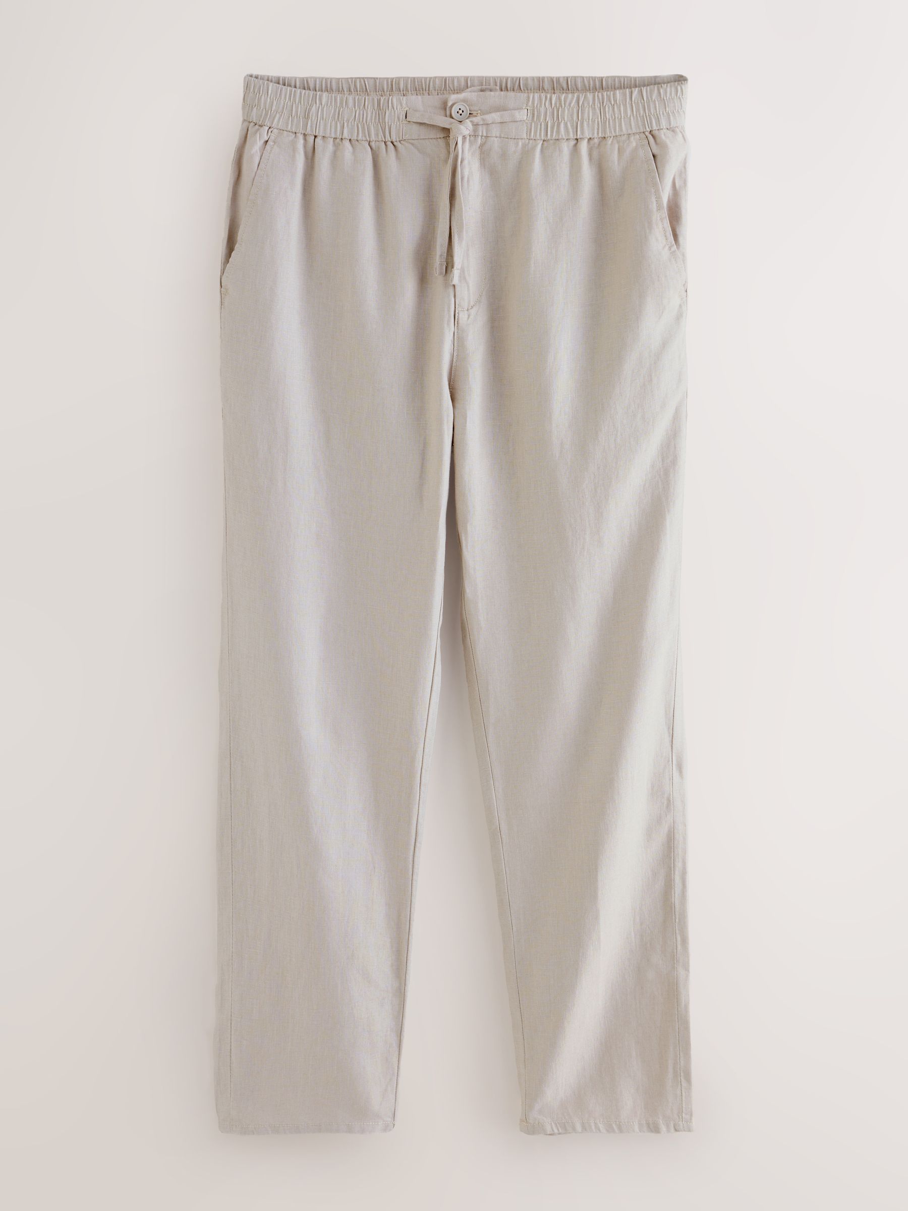 Buy Stone Regular Tapered Fit 100% Linen Signature Elasticated Waist ...
