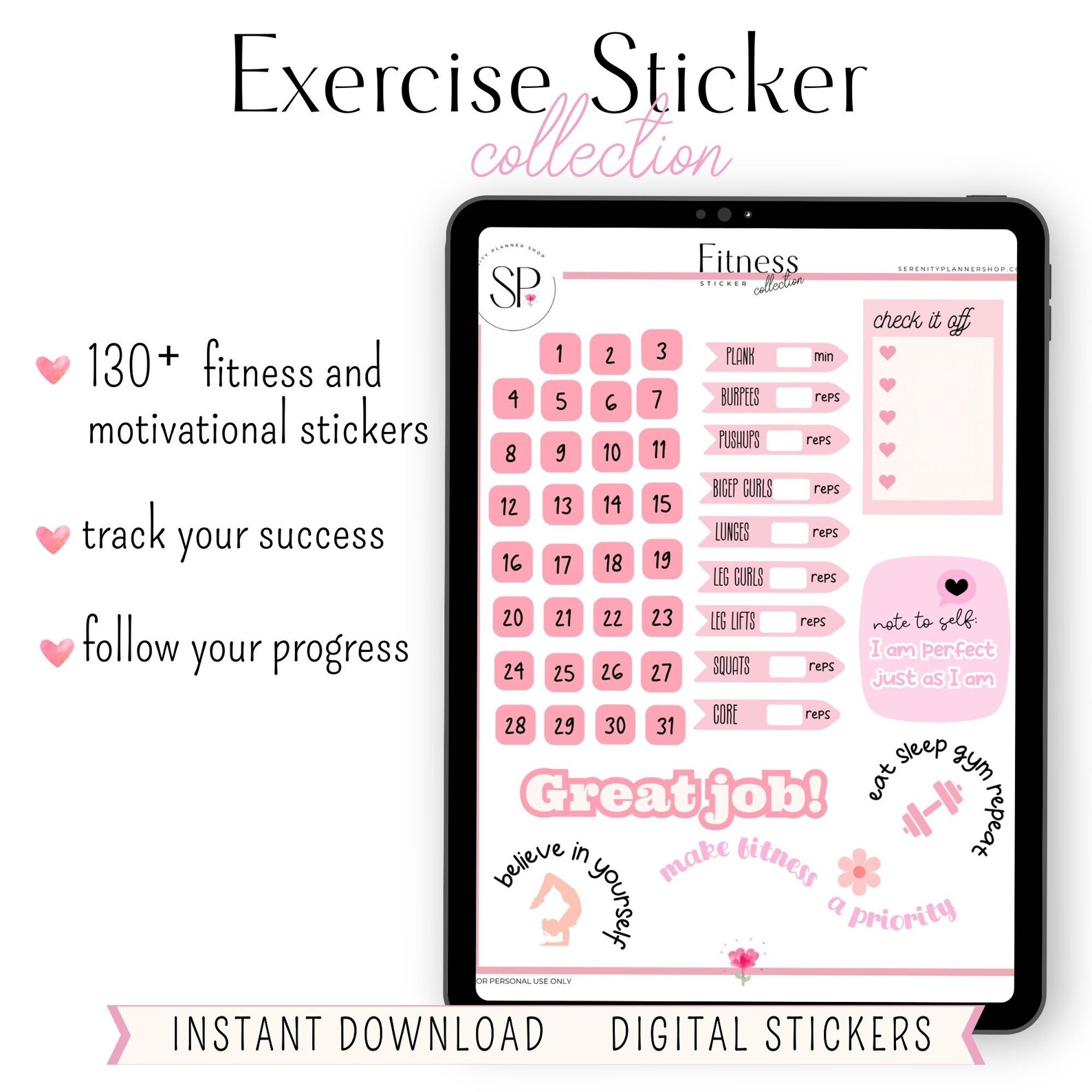 Digital Fitness Stickers, Fitness Journal, Sport Workout Gym Stickers ...