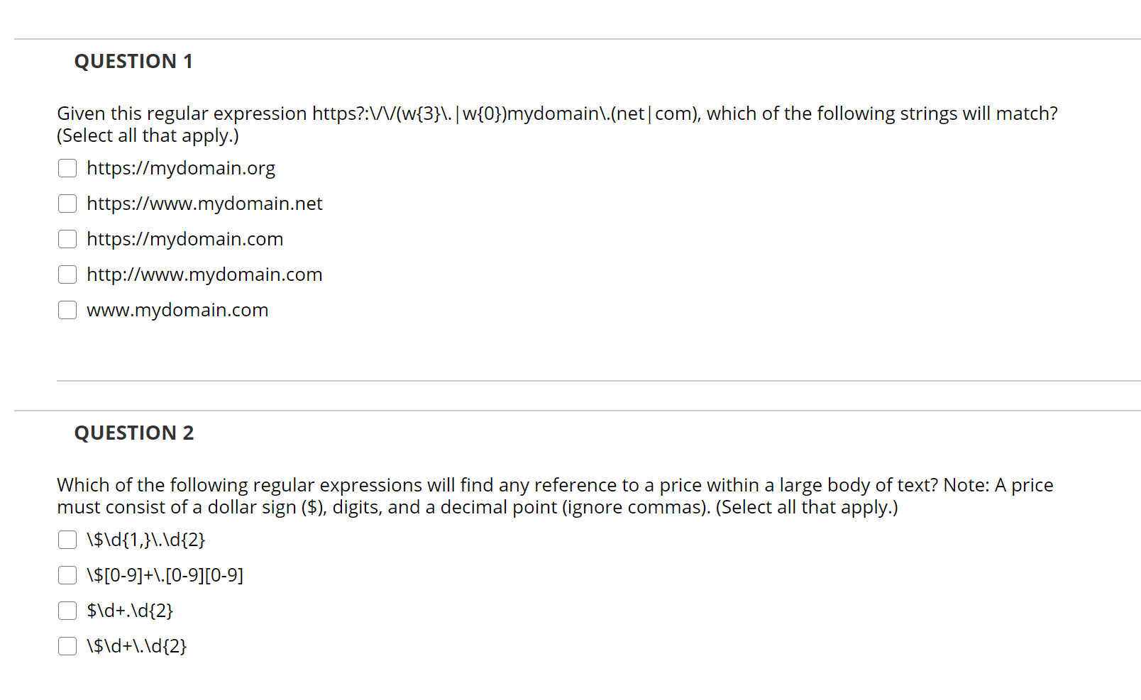 Solved QUESTION 1 Which regular expression correctly solves | Chegg.com