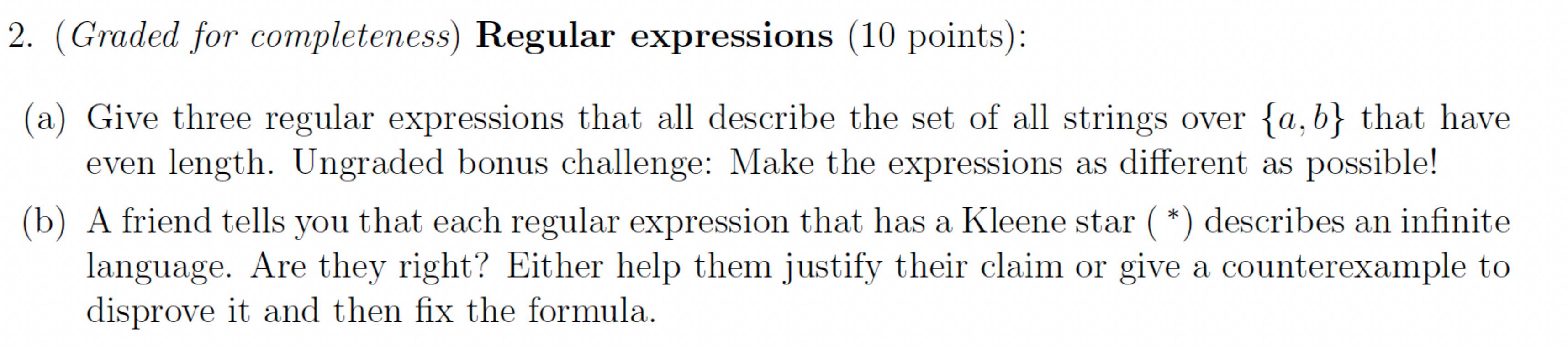 Solved (Graded for completeness) Regular expressions (10 | Chegg.com