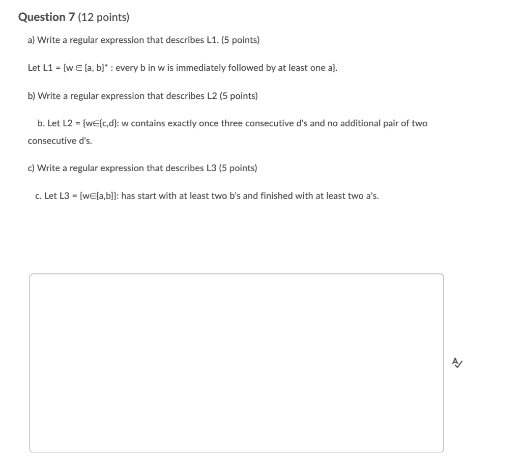 Solved Question 7 (12 points) a) Write a regular expression | Chegg.com
