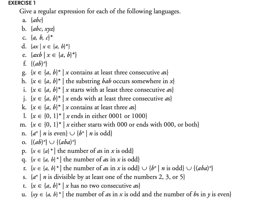 Solved EXERCISE 1 Give a regular expression for each of the | Chegg.com