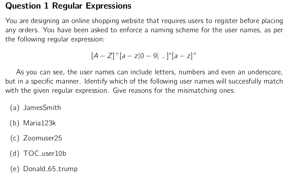 Solved QUESTION 1[Total marks: 10]Regular Expressions & | Chegg.com