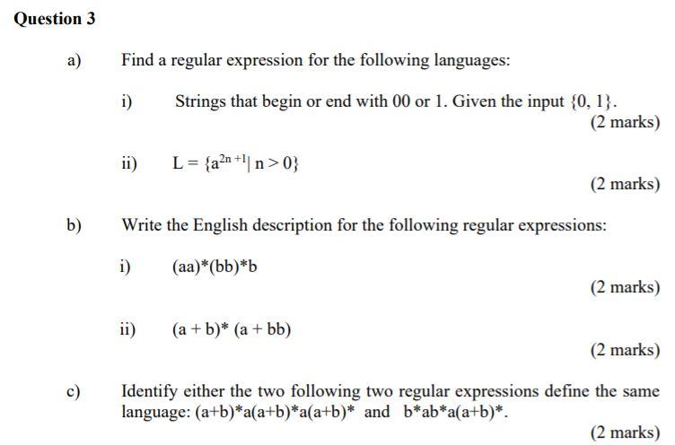 Solved Question 3 a) Find a regular expression for the | Chegg.com
