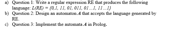 Solved a) Question 1: Write a regular expression RE that | Chegg.com