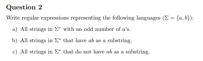 Solved Question 2 Write regular expressions representing the | Chegg.com