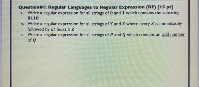 Solved Question 1: Write the regular expression for | Chegg.com