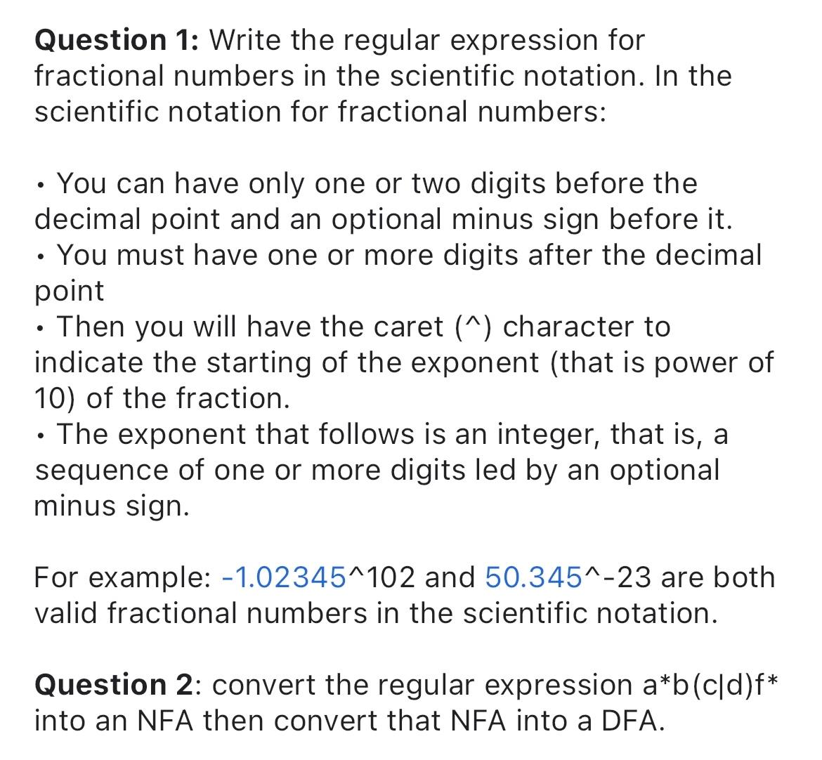 Solved Regular Expression Questions NOTE: After answering | Chegg.com