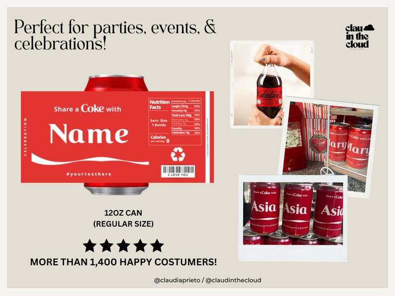 Editable Classic Soda Regular 12oz CAN Label Template Canva Drink ...