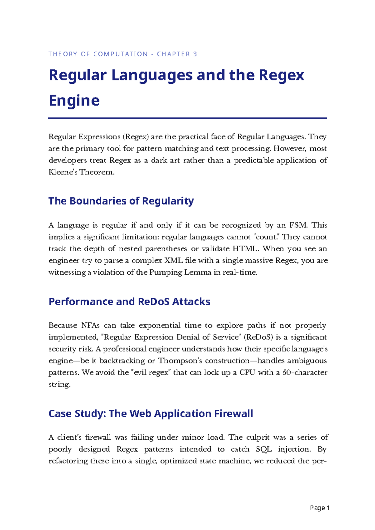 COMPUTATION THEORY CH 3: Regular Languages & Regex Engine - Studocu