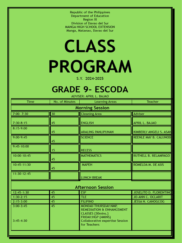CLASS PROGRAM Secondary1 | PDF | Curriculum | Teachers