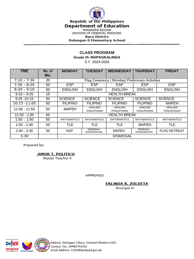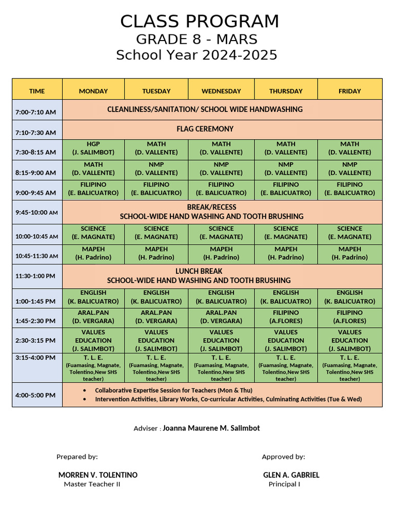 Class Program Mes | PDF | Educational Organizations | Educational ...