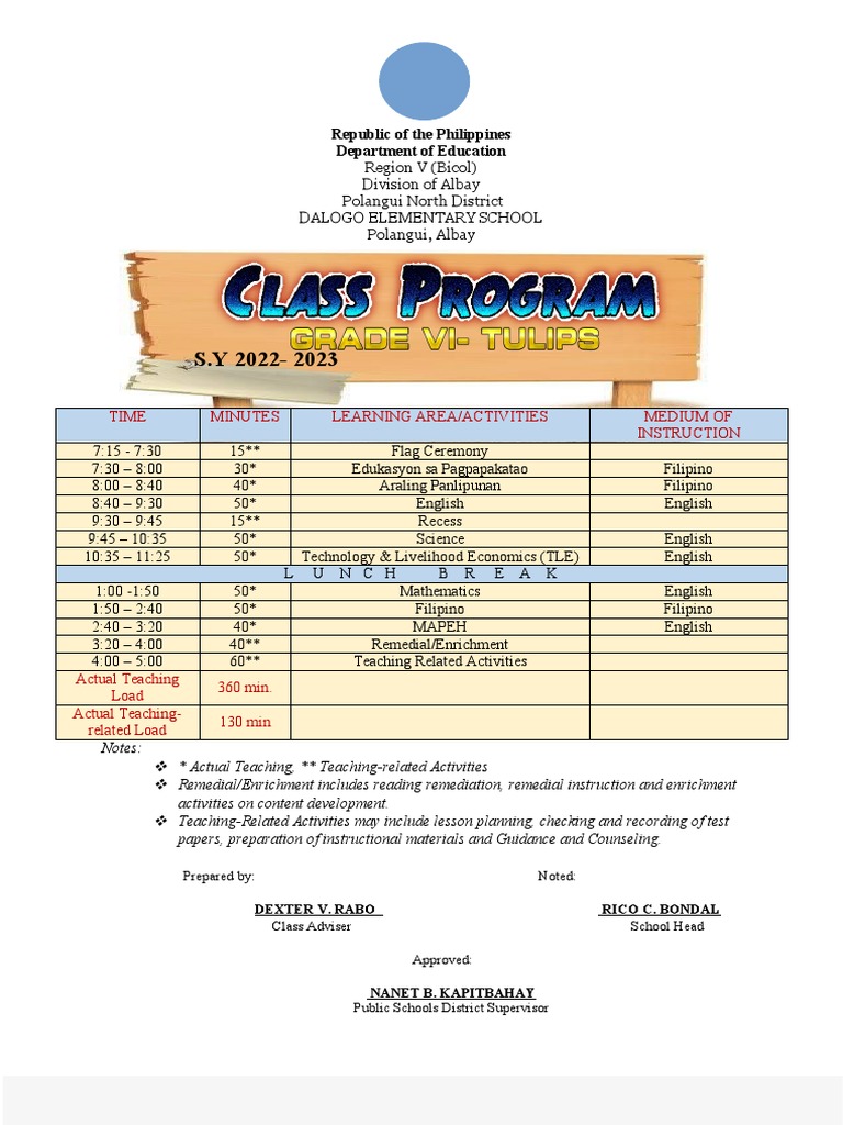 GENERAL-CLASS-PROGRAM-F2F-WHOLE-DAY-2022-2023-FINAL-CORRECTED (3) | PDF
