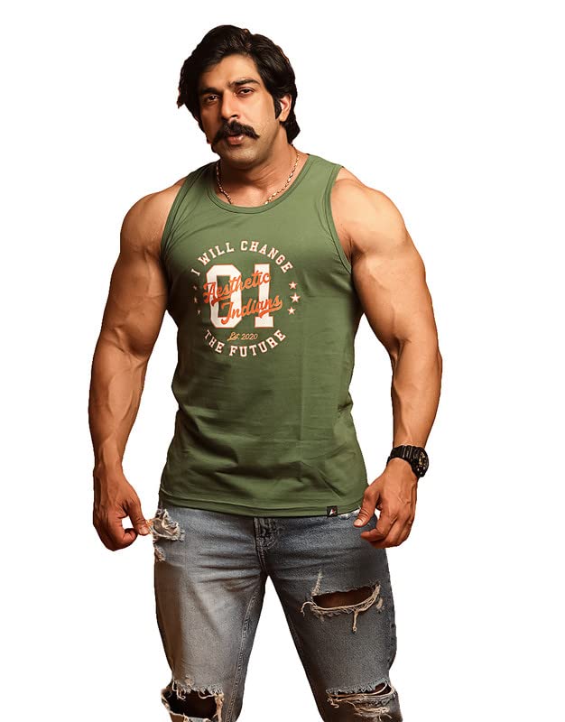 Buy AESTHETIC INDIANS Regular Fit Men Stringers (Xx-Large_Olive) at ...
