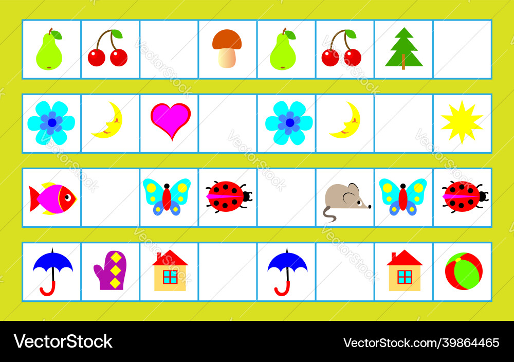 Logic puzzle for children need to find regularity Vector Image