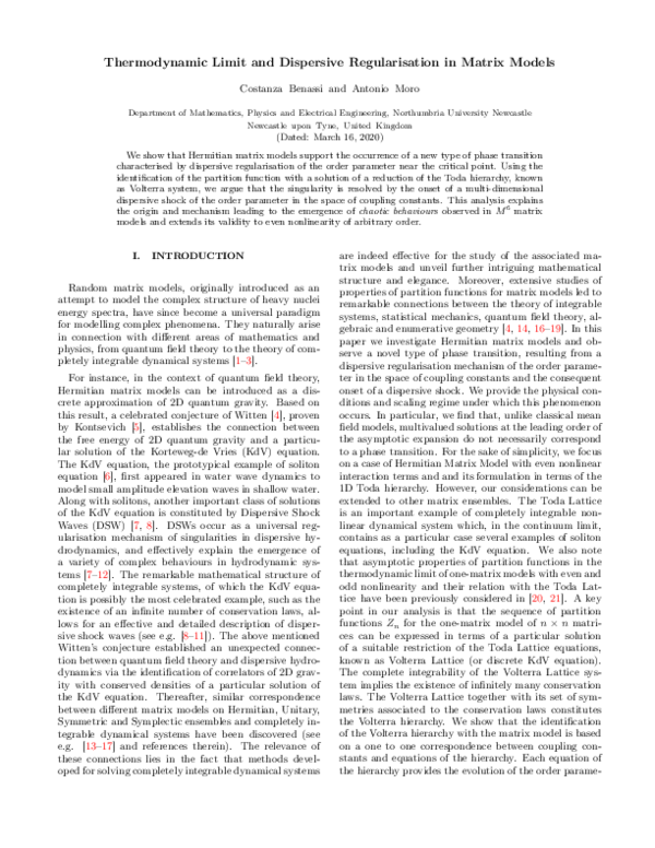 (PDF) Thermodynamic limit and dispersive regularization in matrix models