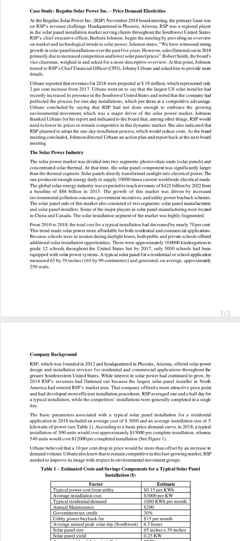 Case Solution Regulus Solar Power Inc Price Demand Elasticities ...