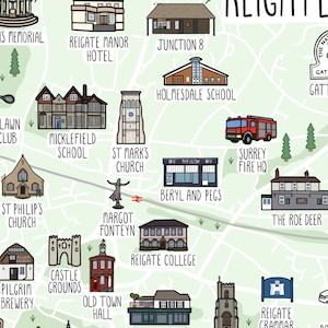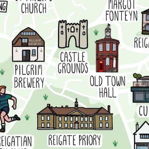Map of Reigate and Redhill Illustrated Map Reigate Map | Etsy