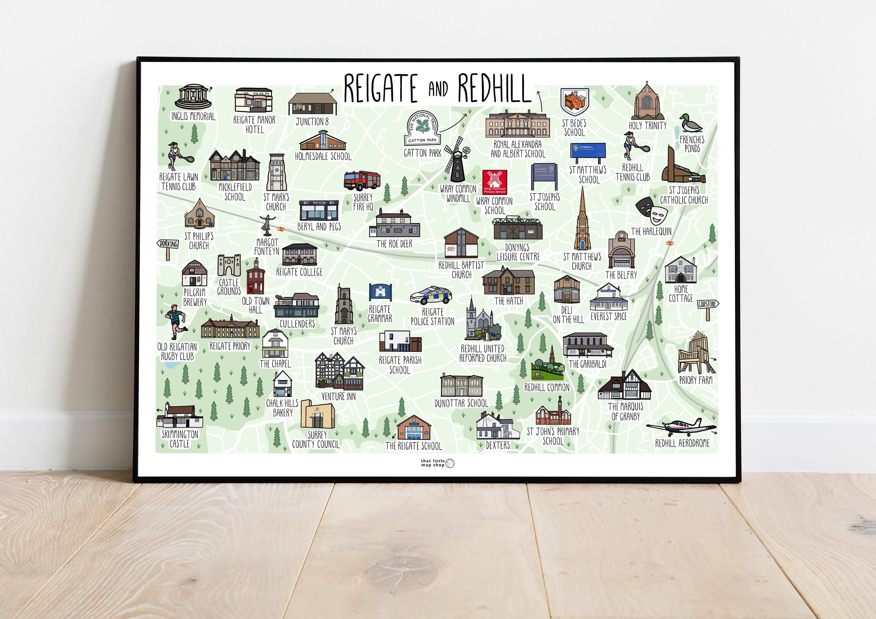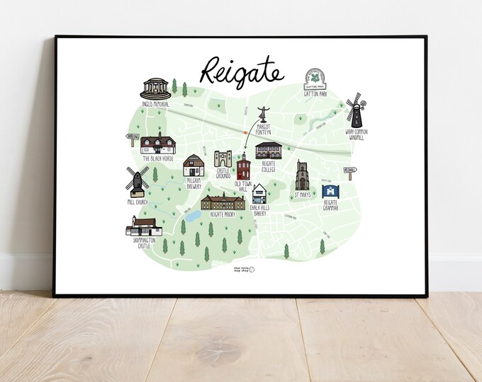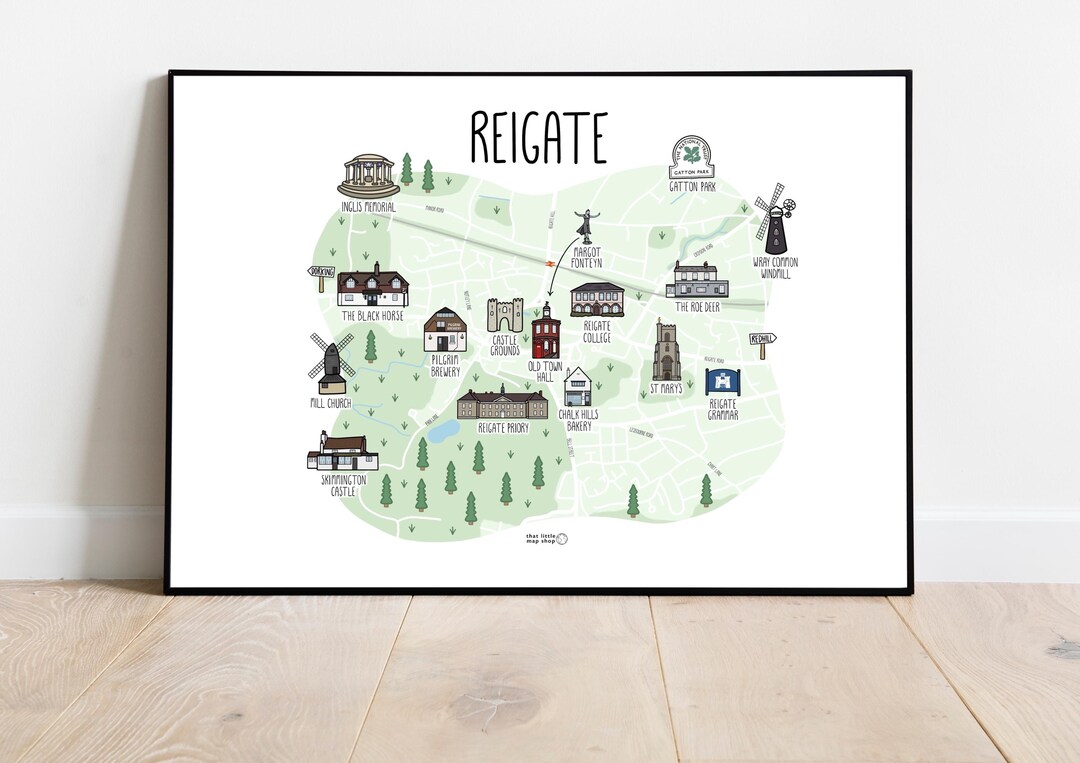 Reigate Map Print: Surrey Illustration, Wall Art Home Decor - Etsy UK
