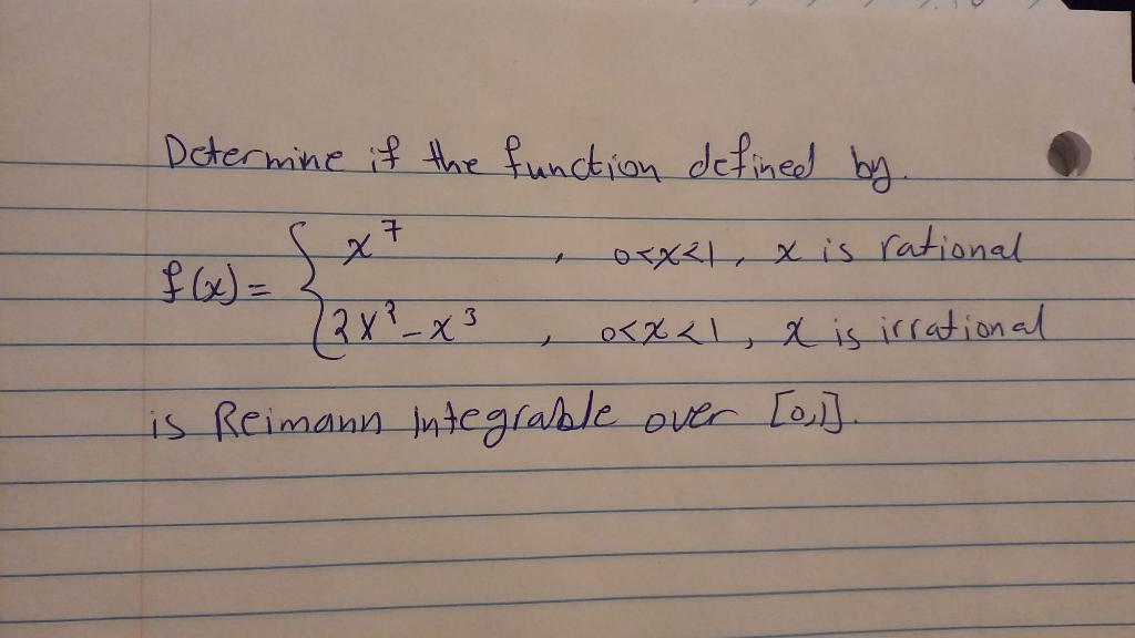 Solved Determine if the function defined by. is Reimann | Chegg.com