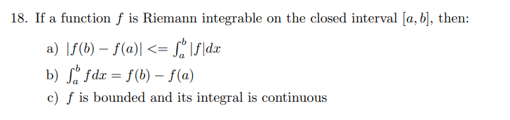 Solved 18. If a function f is Riemann integrable on the | Chegg.com