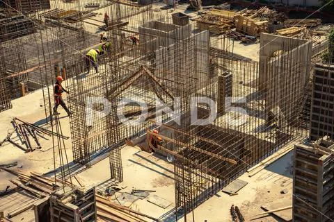Photograph: Reinforcement process at a construction site in monolithic ...