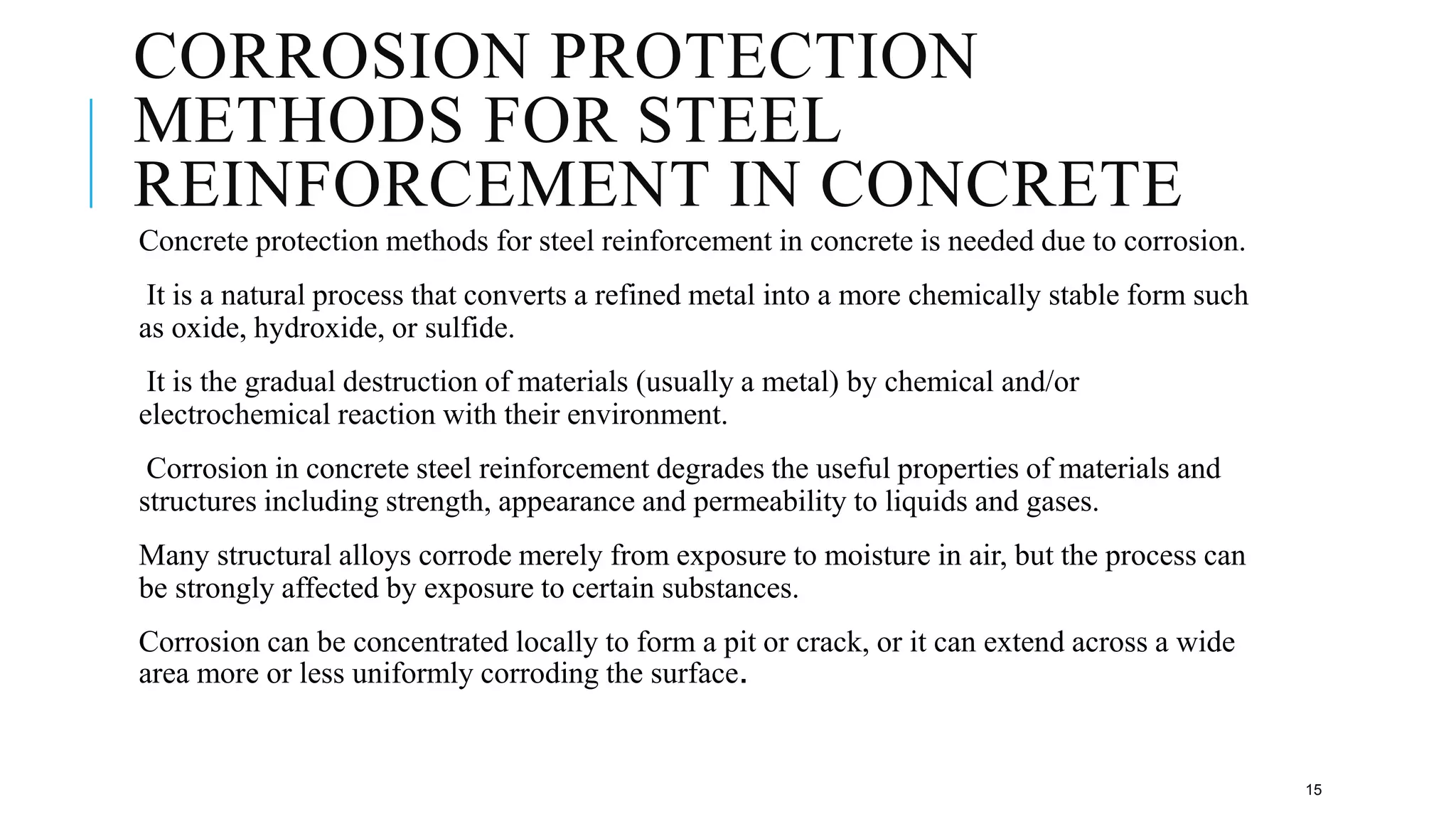 Corrosion Protection methods for Steel Reinforcement in Concrete