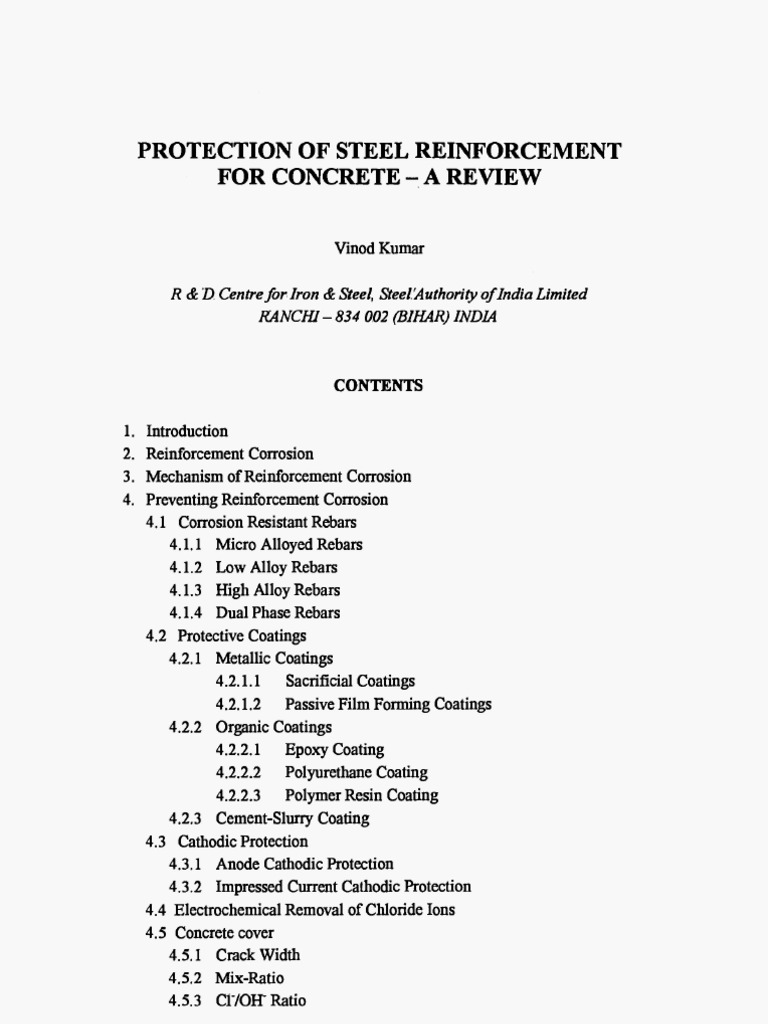 Protection of Steel Reinforcement For Concrete | PDF | Corrosion | Concrete