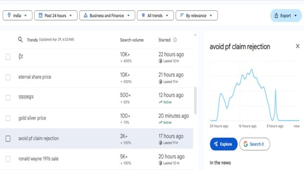 Google Trends alert: How to avoid PF claim rejection — simple EPFO ...