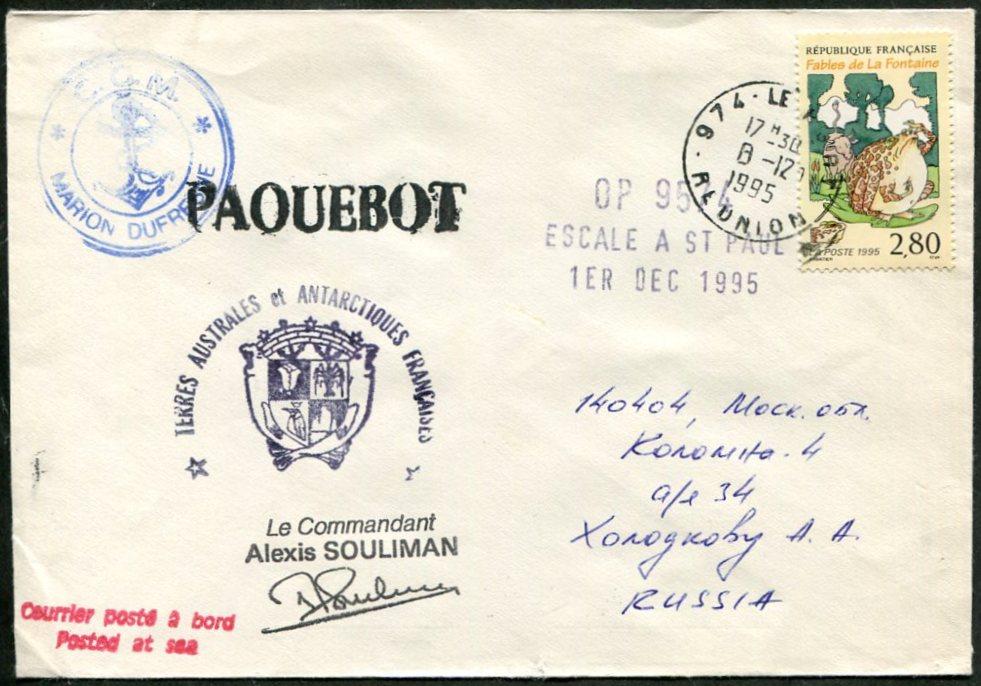 ПАРОХОДНАЯ почта АНТАРКТИКА 1995 Франция Антарктические территории TAAF ...