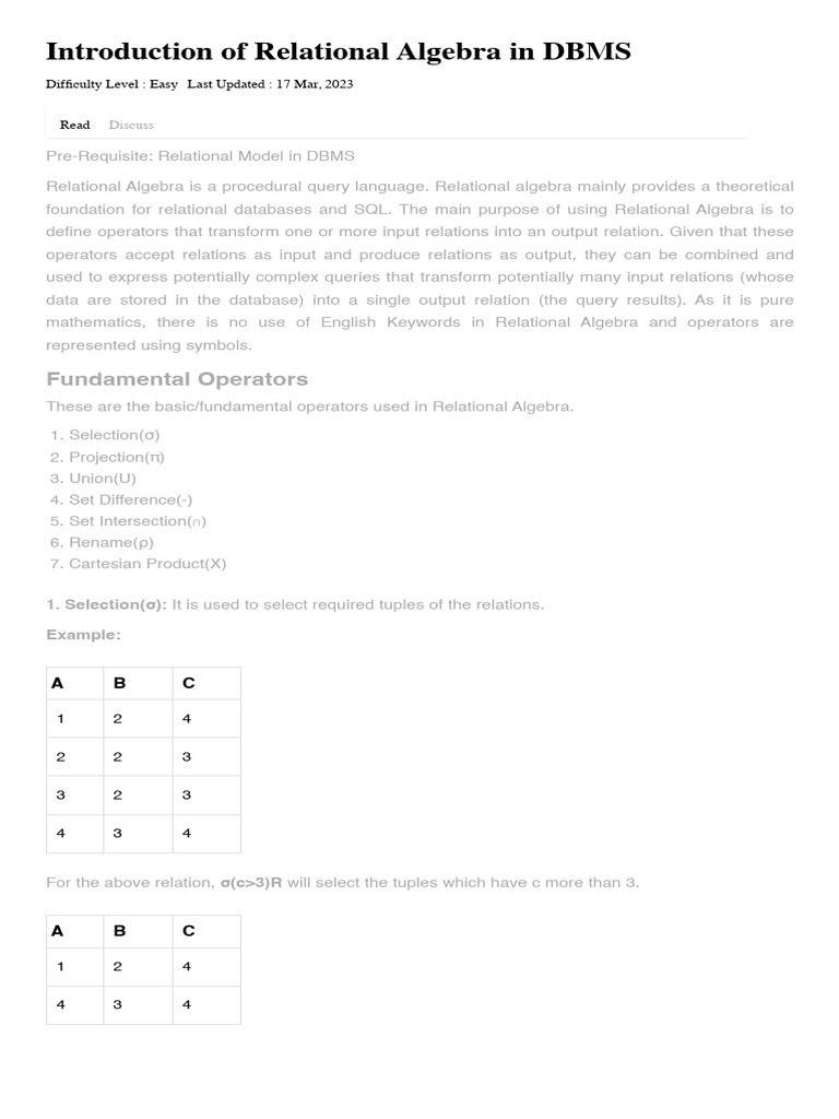 Relational Algebra in DBMS | PDF | Relational Model | Mathematics